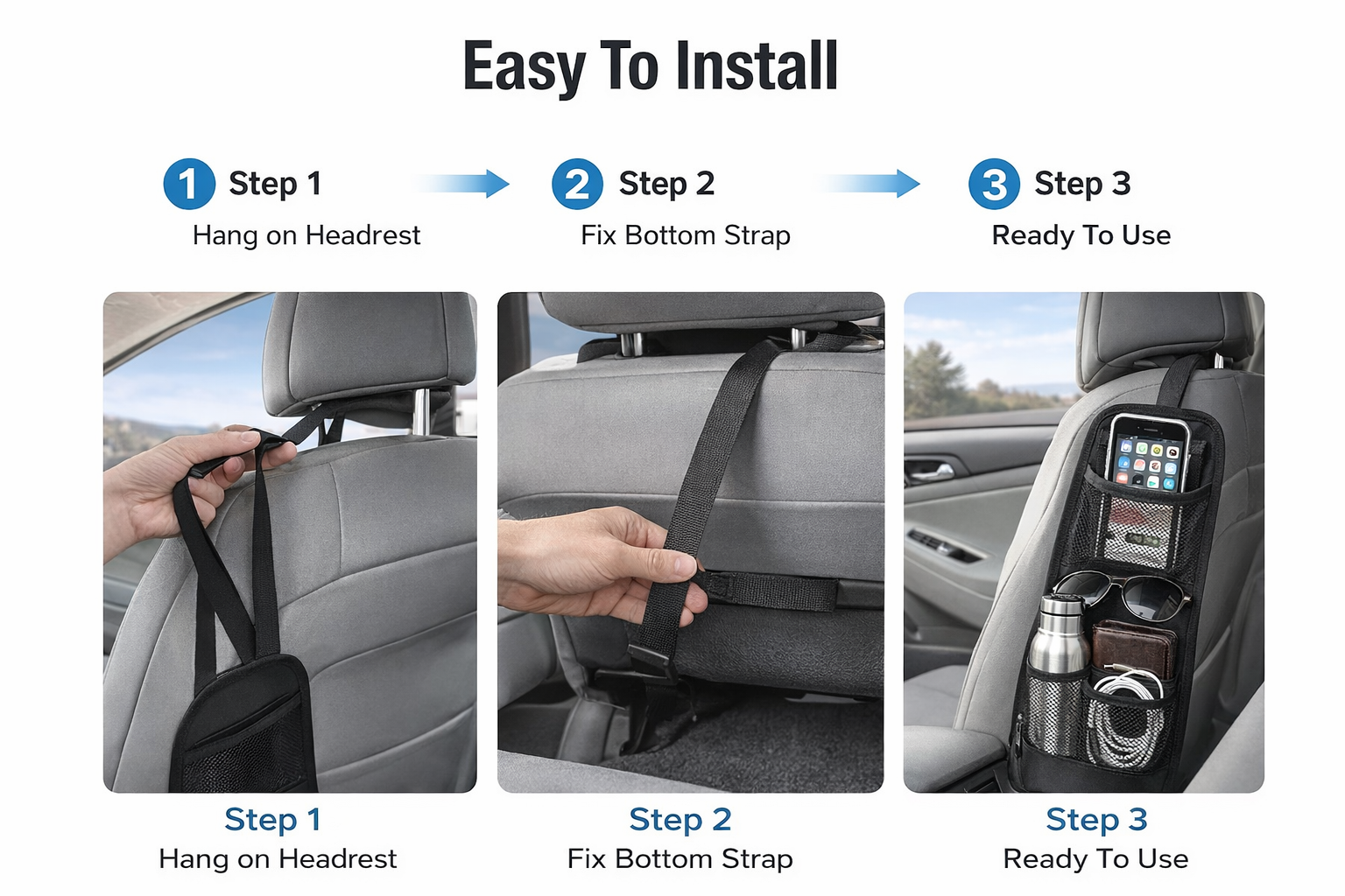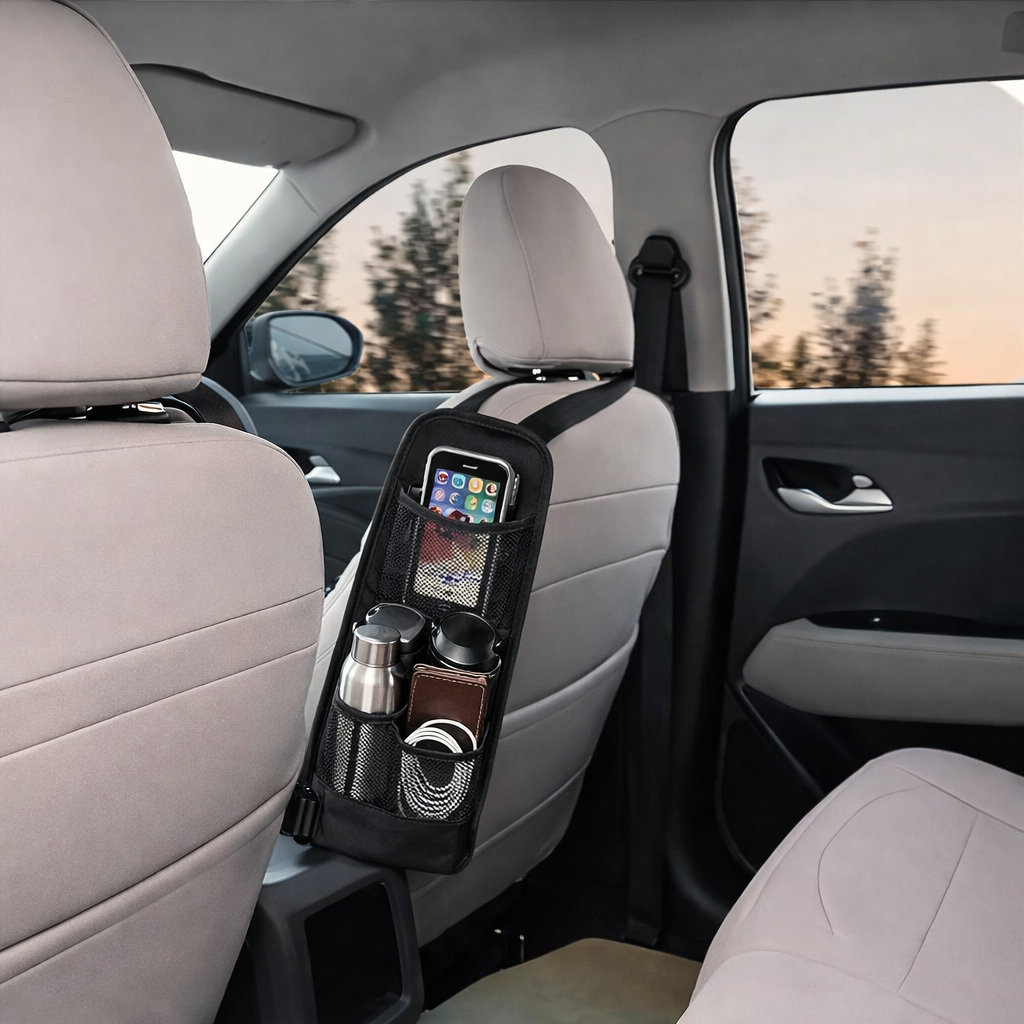 Made from durable tear-resistant fabric, this organizer is waterproof, breathable, and built for long-term use. The adjustable strap design allows easy installation and a secure fit on most car seats, SUVs, and trucks. Its compact design saves space while keeping everything within easy reach.